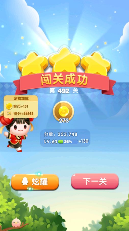 492关,一次得640金币