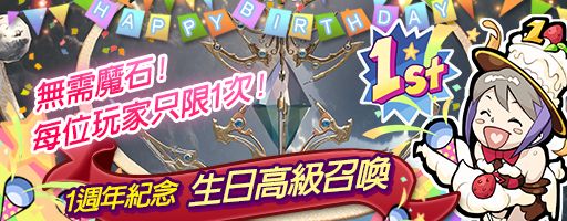 請千萬別錯過每人僅限1次的HAPPY BIRTHDAY免費高級召喚!