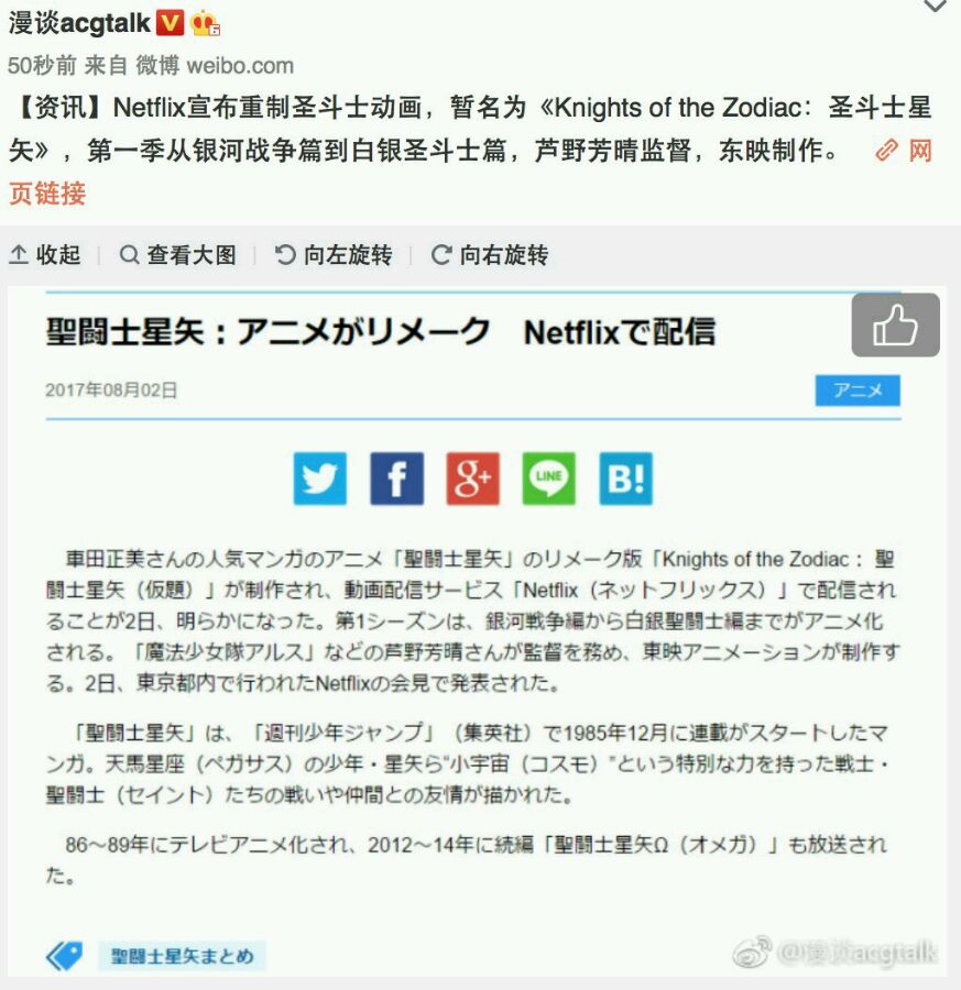 【资讯】圣斗士动画或将重制