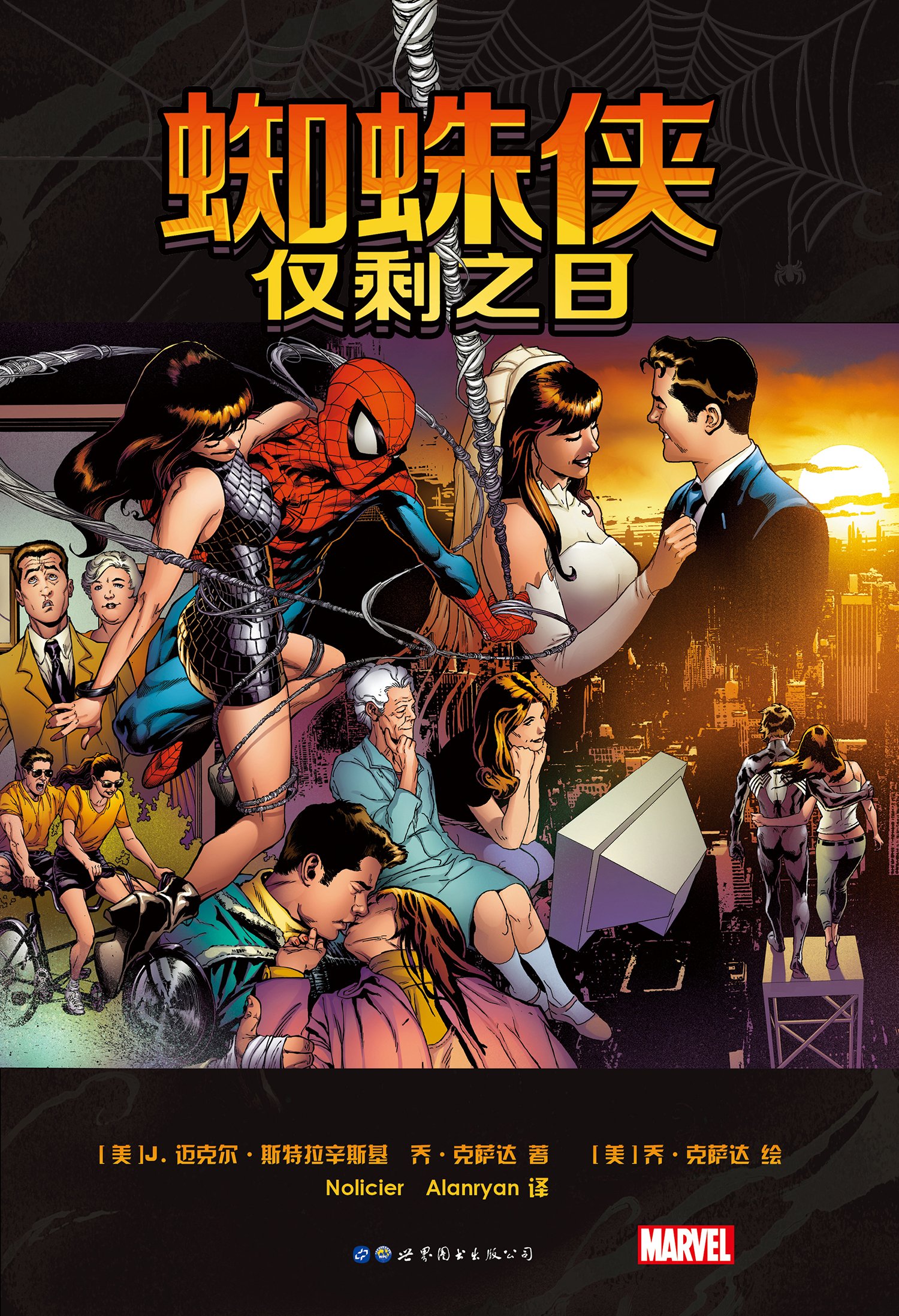 新书预售:《蜘蛛侠:仅剩之日》世界图书出版公司。(标画蜘蛛侠人生转折点的事件。你会怎么做……?如果,你生命中最亲的人,被一颗原本瞄准你心脏的子弹所穿透,躺在医院病床上,命悬一线?如果,这不过是降临在你最亲近的那些人身上接连不断的悲剧中的一件——痛苦、疯狂甚至杀戮中的一次范例,你会怎么做?如果,这些事之所以会发生,全是因为你、你的主张和你的宿命,你会怎么做?如果,你有能力救她,但代价却远超能你能承受的,你会怎么做?如果,你是蜘蛛侠……而你所拥有的时间只剩下……一天?收录《超凡蜘蛛侠》第544~545期,《友好邻居蜘蛛侠》第24期以及《惊奇蜘蛛侠》第41期。由编剧J.迈克尔·斯特拉辛斯基以及画师乔·克萨达共同为您呈现。)