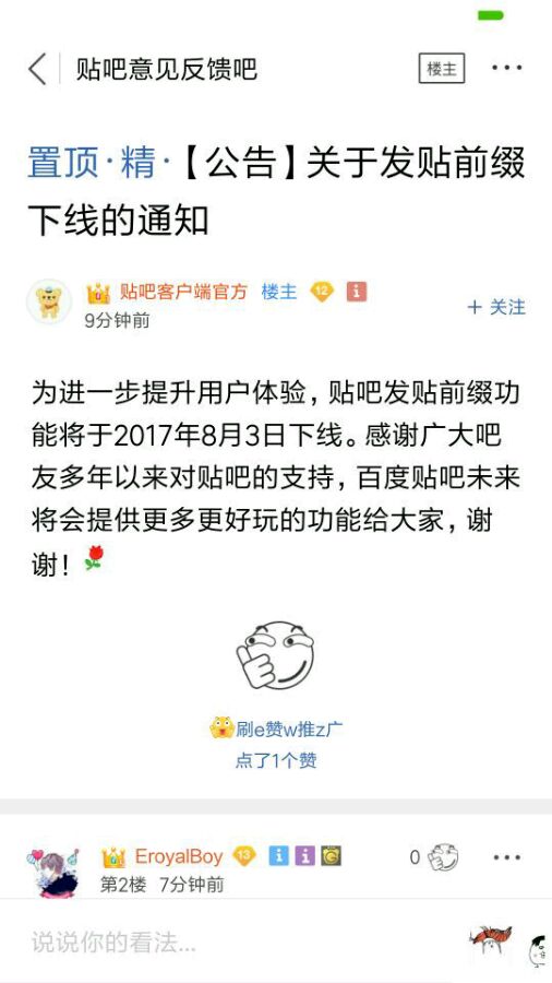 贴吧于今日起,贴吧的自动前缀被下架。本吧也是。