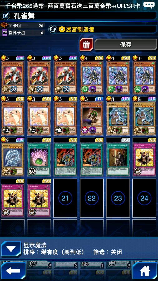 根据你的组了下,看破换成龙之宝珠,同盟和随从换成了继承,力量,打了两把,第一把成功,第二把过牌跟不上,舞把自己抽死了