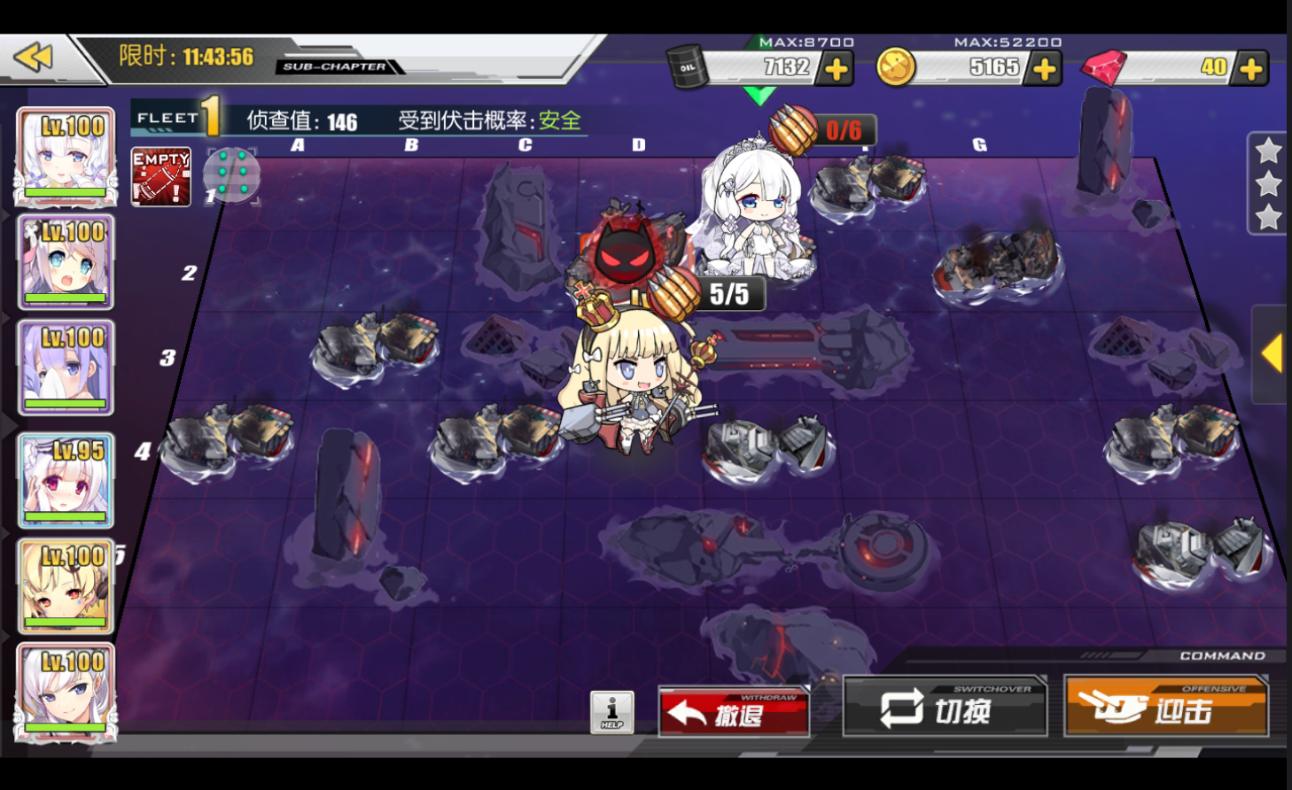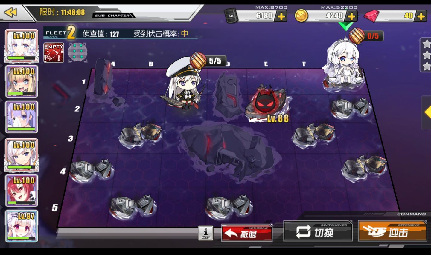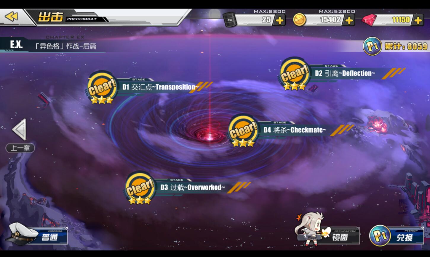而D图只限制战舰所以选择上傻白,提供皇家整体的BUFF并且在D图担任主输出(主炮请上高爆)