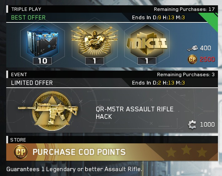 COD13新活动:10稀有+MK2史诗包+军需官破解包