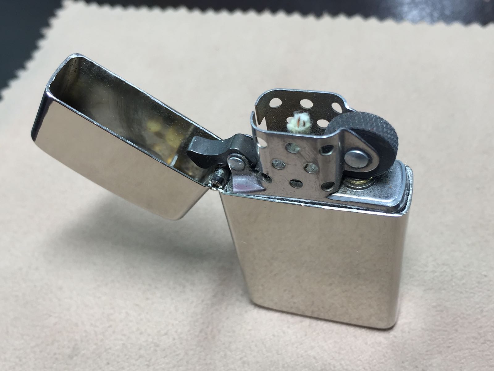 【具体描述】二手2011年9月 爱心窄机 反底刻(对机中的一枚)镀银底板 背面蚀刻+水钻镶嵌。机身正常使用擦丝擦痕,无明显磕碰,顶部少许针眼麻点,正面一处不明显浅凹点特定角度拍出,定义一般品。铰链正常,原配11G内胆打火强,无包装。