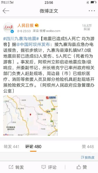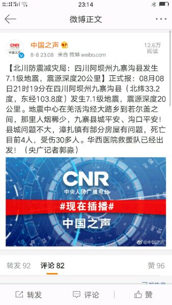 【与电影无关】四川九寨沟发生7.0级地震