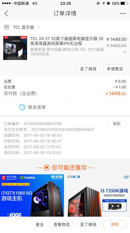 刚买来没多久TCL 1800R曲屏 32寸 ,组装了下用了几分钟因为桌子太小看了太大眼睛受不了想换个小的,箱子包装泡沫塑料气垫各个配件全在,还有TCL保修卡,有意的私,99新,950,扣扣422912578