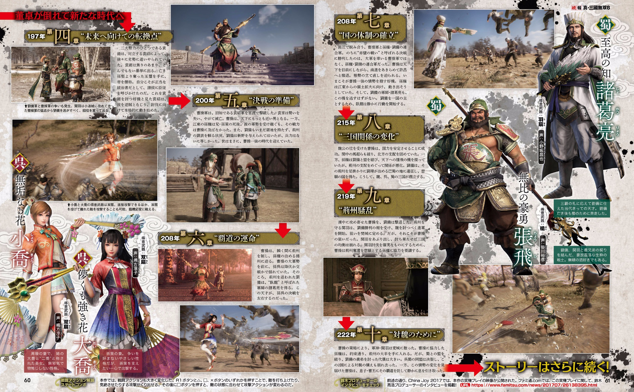本周《fami通》杂志上《真三国无双8(Shin Sangokumusou 8)》新情报发布,公开了一批武将的全新造型。此外游戏的基本剧情章节也公开。