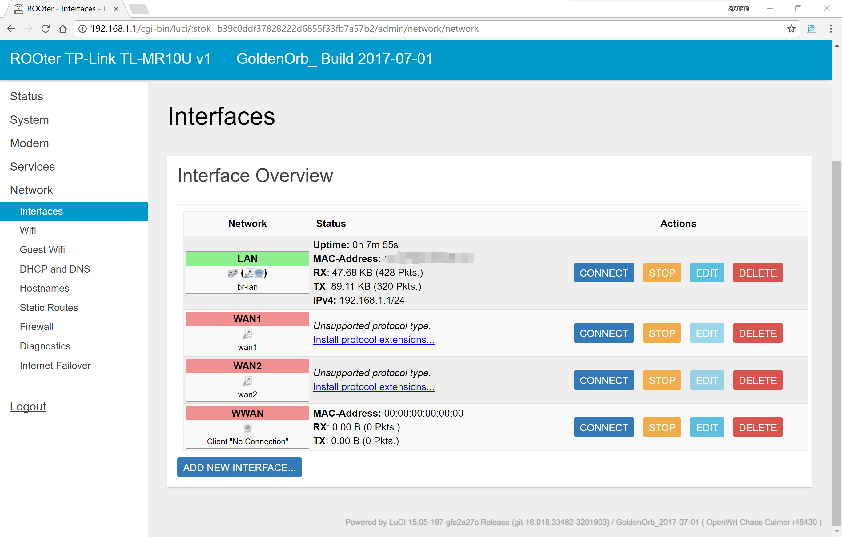 这里有线口是LAN了,