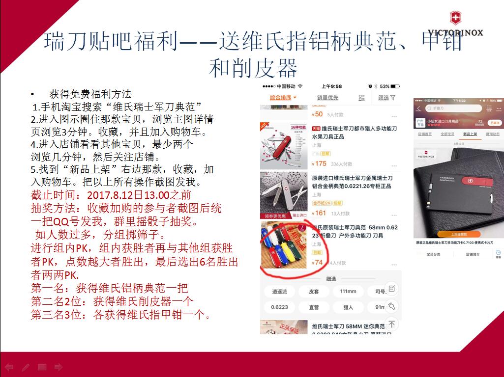 1.手机淘宝搜索“维氏瑞士军刀典范”