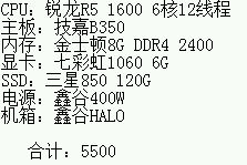 3a是自己瞎配的,当然也是想往好了整,毕竟下次升级又是猴年马月了,配置见图。稍贵于i+n但是性价比不错。就是配出来得多吃半个月泡面。