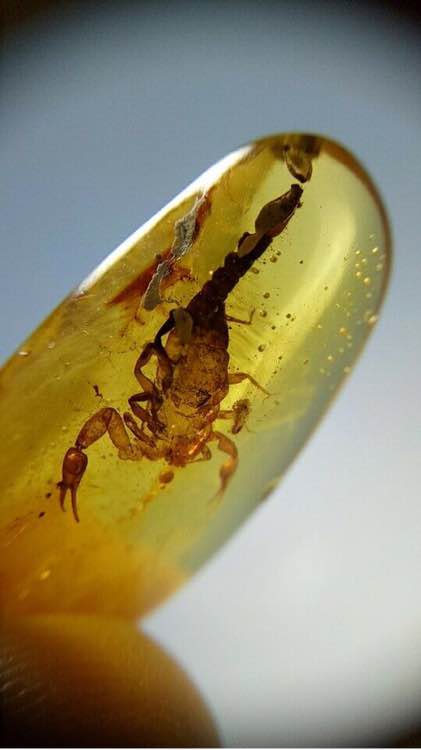 缅甸虫珀三宝,青蛙、蜥蜴、蝎子~青蛙和蜥蜴是不想了,只有蝎子能收得起,但想要个相对净水的大蝎子也不是那么容易,之前看中一个五位数的大肉蝎,犹豫了几天就被别人收走了,一直后悔~这次看到个还不错的,价格合适果断收下~唯一可惜的是表面因为磨孢子露了白,不过瑕不掩瑜,还是蛮喜欢的~不出勿询。