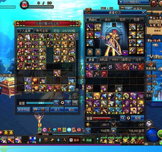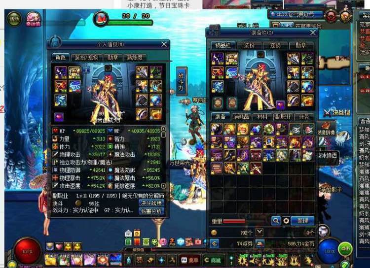 防具红字57778,新年宝珠两个鞋子44独立。左边白10右槽掉0了。不打紧。恍惚红10。荒古红10