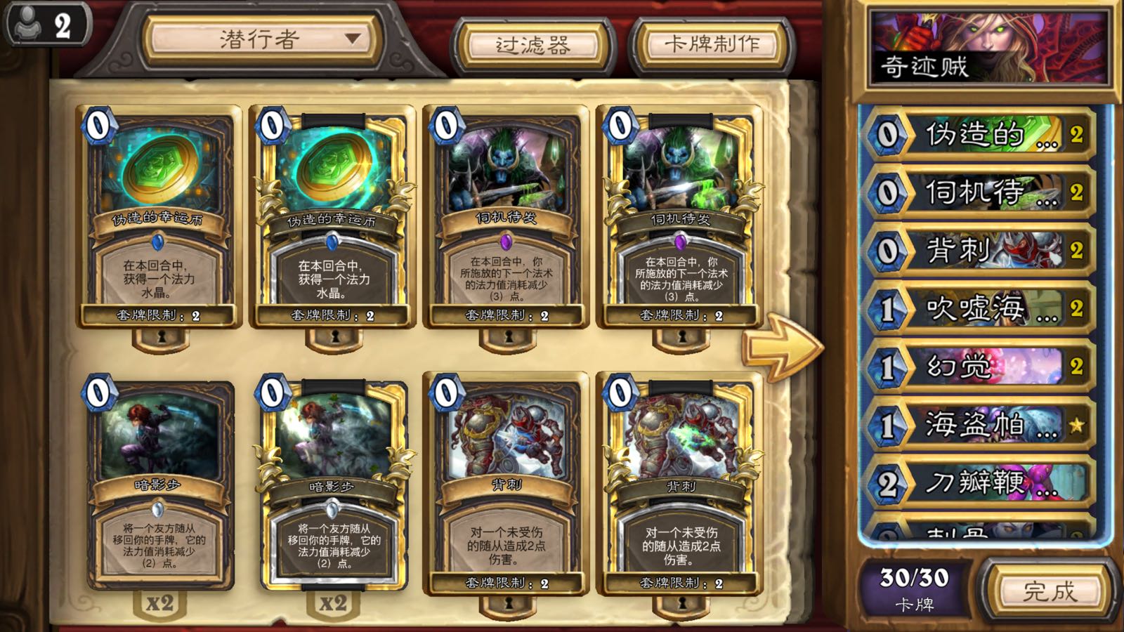 卡组如下,其实奇迹贼的卡组都大同小异