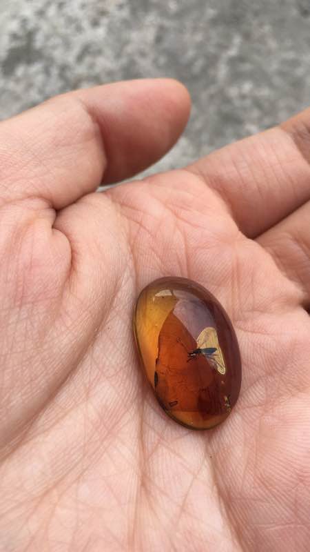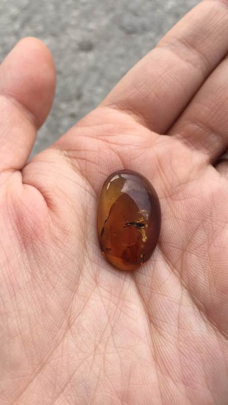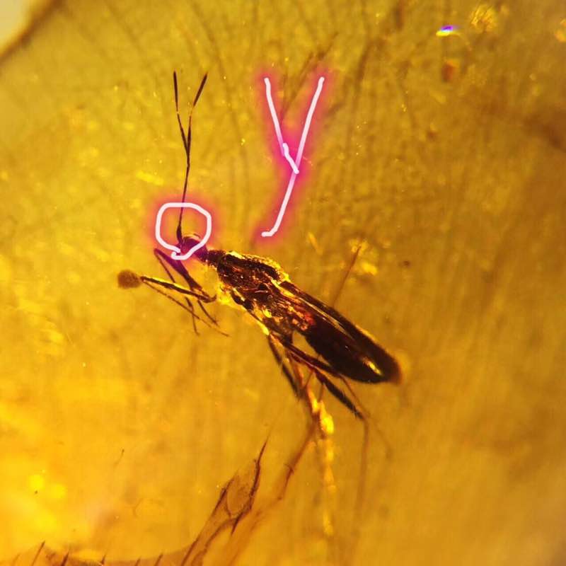 这是在一块琥珀里面的蝽。不过奇怪的是只有一根触角。还是分岔的。现在可能已绝种。请大神鉴定品种。