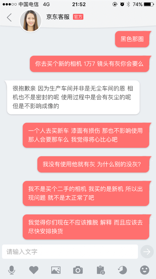 某东买的2号到货 24-70套机 发现镜头有灰 随机换货 某东收到货后表示镜头里无灰 让仔细检查 终于发现有灰 之后表示还要让佳能检测 然后一直没有消息 最后于14号退款 还是去实体店吧