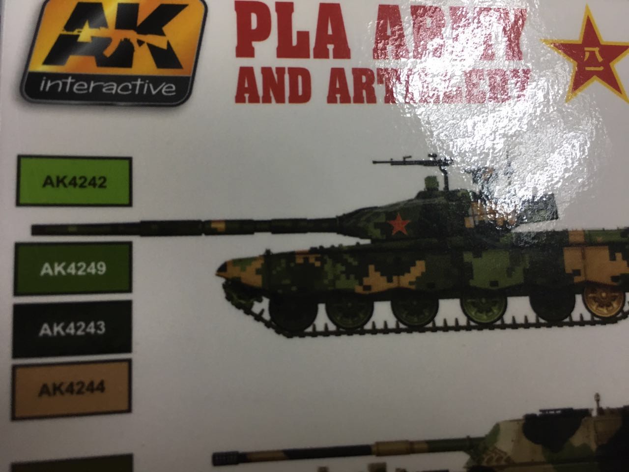 一直觉得ak的颜色准,买了ak4240的套装。但是发现说明书给出的99数码迷彩不是阅兵4色数码迷彩,是3绿1黄,而我研究了实际阅兵4色应该是1沙黄色1黄土色,1深绿,1黄绿。