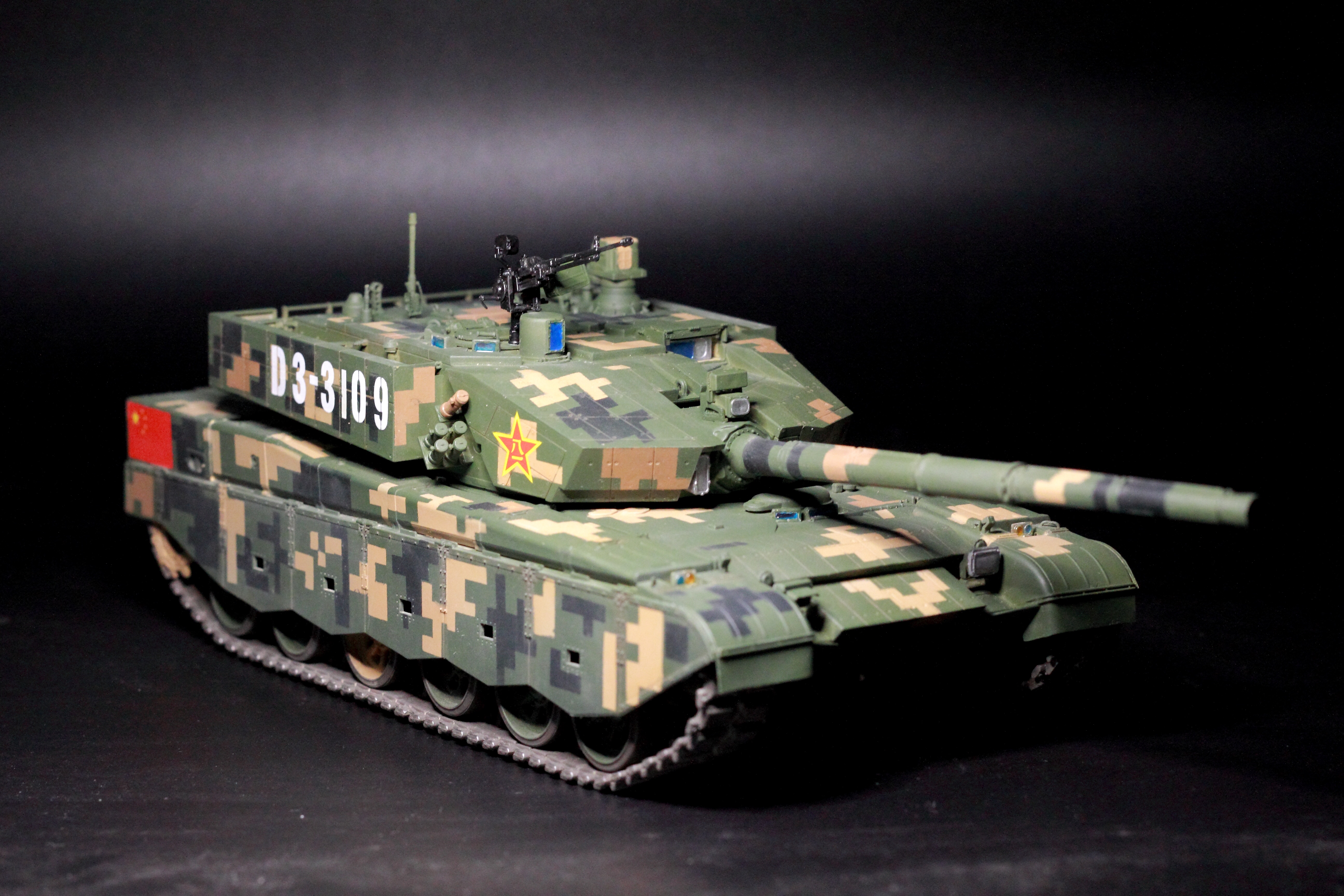 盒子示意图上面举例的是99式,这款的三绿一黄数码迷彩也没错