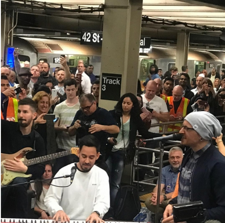 非常值得收藏的一个视频,LP在纽约参加一个电视节目,在地铁站里露天表演,与粉丝零距离。