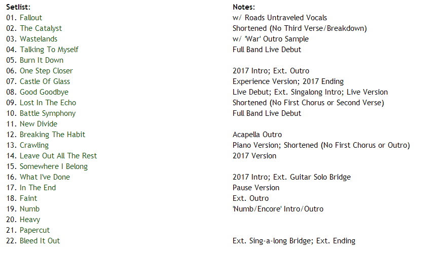 2017年的第一场表演,Facebook的直播活动。在Mike 和Brad的伴奏下,CC在录音室里清唱了CRAWLING,和Kiiara唱了heavy和burn it down(对,Kiiara也唱了),然后乐队其他成员进入录音室,回答了一些网友的问题,那个时候的CC还有说有笑,各种玩笑逗的大家十分开心.......很值得收藏的视频