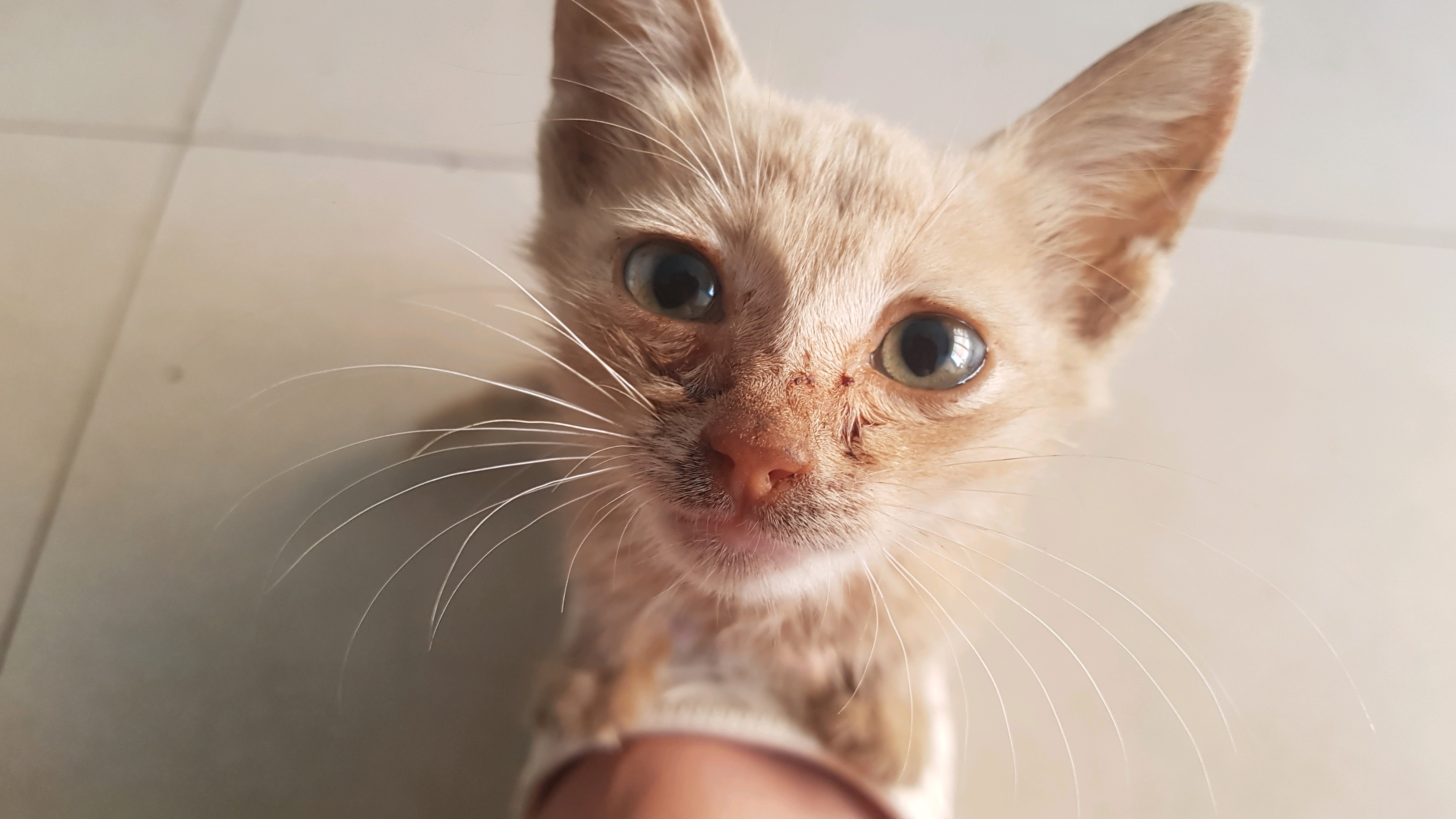 到家第二天开始发烧,拉肚子,也不吃饭,把我们急坏了。上网查宠物用药,给它喂了不少药,后来才开始好点。这张图里它有一双看起来特别大的耳朵,朋友们戏称是精灵耳,只有我们知道小家伙是营养不良造成的,真心希望能给它找一个好心的主人