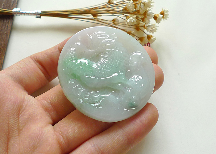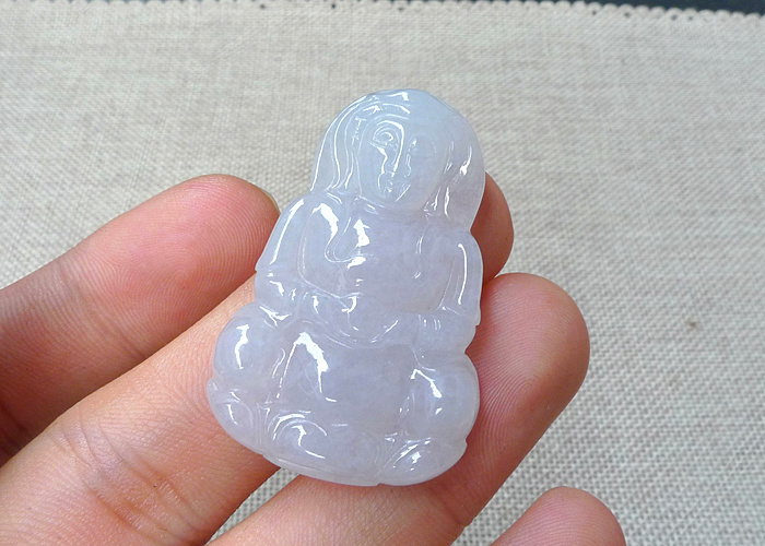 【名称】-缅甸天然翡翠A货水润观音【尺寸】-39.4*25.8*5.5mm【价格】-268元【简介】- 无纹裂,种水好,玉质水润。