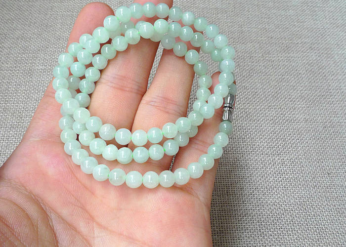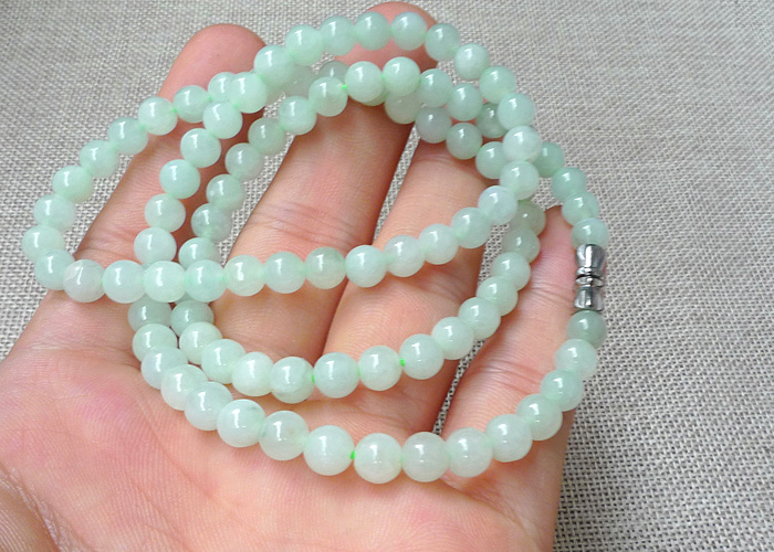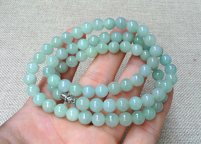 【名称】-缅甸天然翡翠A货水润浅绿项链【尺寸】-7.6mm【价格】-299元【简介】- 种水佳,玉质水润,浅绿,个别有纹裂,无影响。