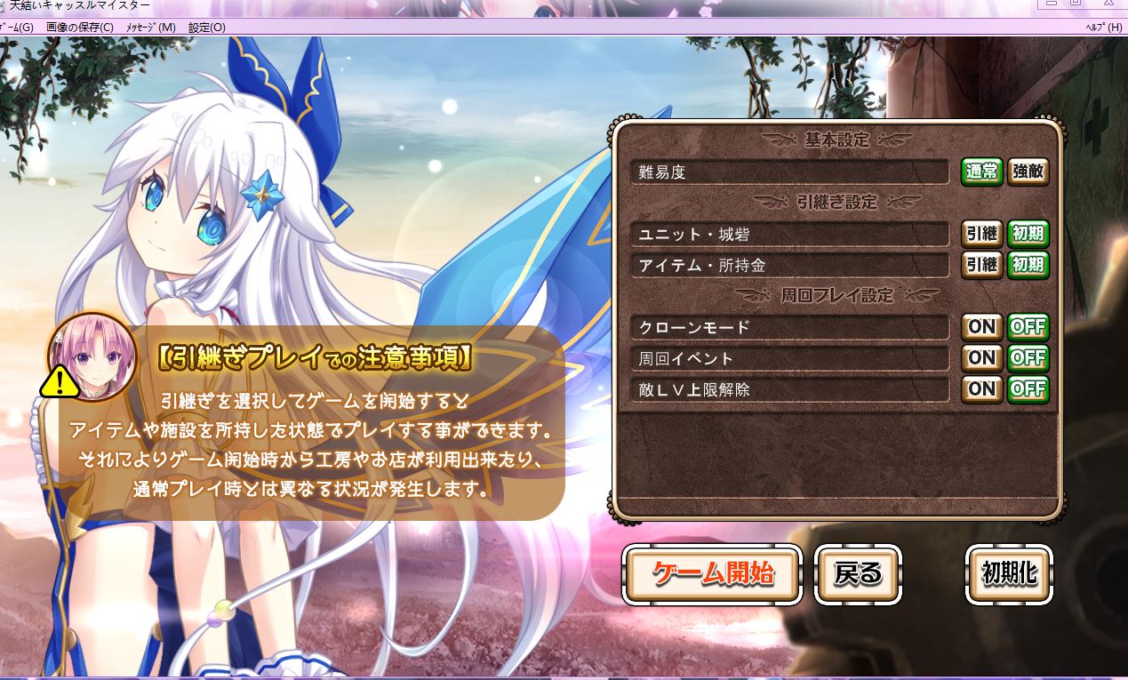 刚玩这一作一周目是不是这样设置就不会继承什么的了,想重头玩,用vnr翻译起来感觉不太准确,不对的话求大神指正谢谢了~~~~