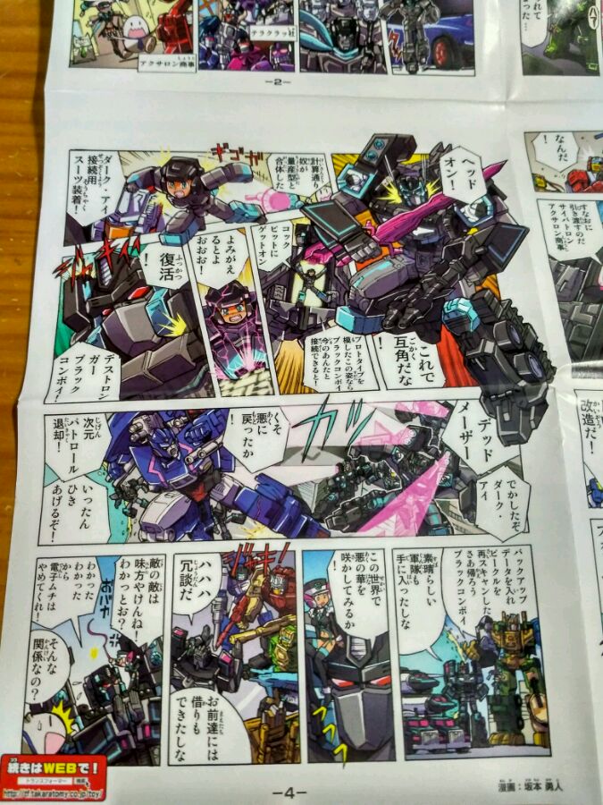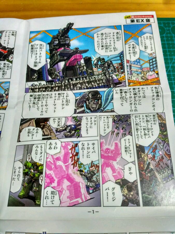唉墨迹是我墨迹,想睡觉了,放完配件和漫画吧,漫画意思大致是天灾是个次元维护部队,在追捕祸根小队【队长好帅,痴汉脸】,把袭击他们都抓了,妹子只得求助小头郭文他们。队长还是驾着刹车过来的【TT社的阴谋,不我是不会去买刹车的!】没想到特战队的载具三变,过来轰炸福特基地,郭文计划捕获机体作战,队长也扫描费特变形【队长的天灾是蓝眼嗷】没想到妹子直接钻入体内,黑了系统转成天灾,击退刹车和特战队【刹车:我一定会回来的!】期待后续