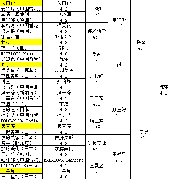 具体比赛比分见国际乒联官网