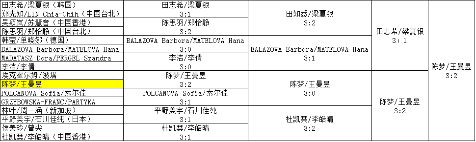 女双:陈梦/王曼昱