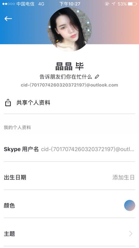 因为后天有个面试 ,对方需要Skype 面试,我就在手机下载了一个Skype ,那边问我账号多少 ,我不是很清楚 ,是我在电脑上看到的“账户”还是手机上那一串用户名