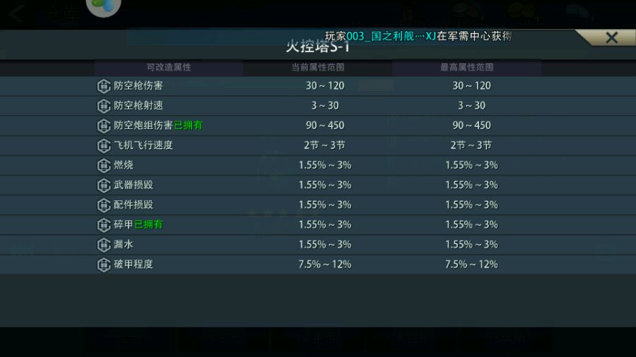 谁有五星火控塔内部属性图 发