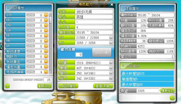 超级属性能往下滑 喜欢面板先点伤害 点什么暴击啊[滑稽]