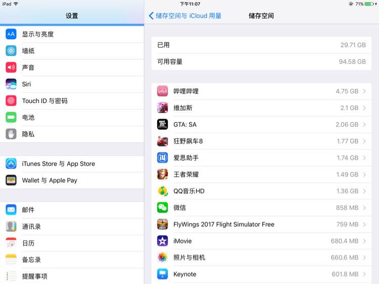 自从有了iPad,手机基本上都不用了,游戏视频全在iPad 上,微信也在iPad 上登录了,买的128G,从来不清缓存,现在也才用了30G,手机已经沦落成了打电话发短信的工具