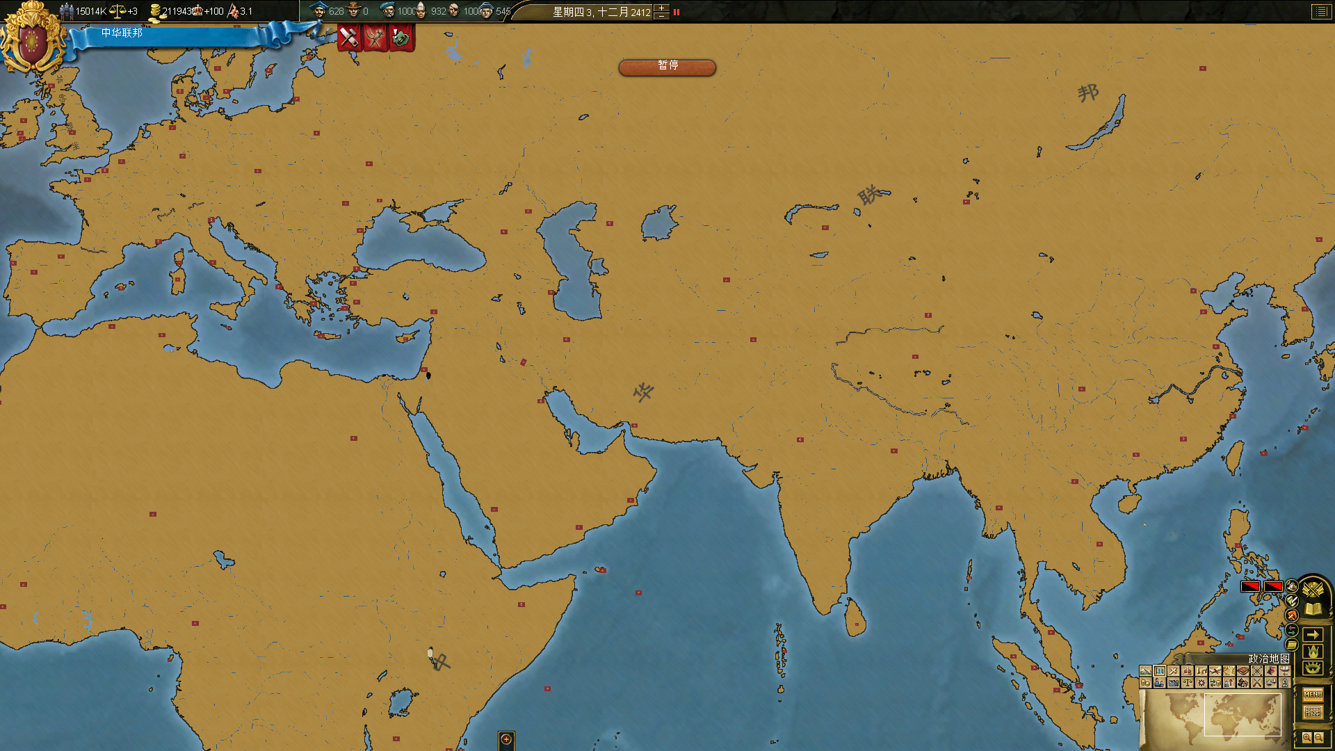 刚开始 用中国 扩大版图到一定程度会卡 但是 等成立了中华联邦 又突然开始不卡了