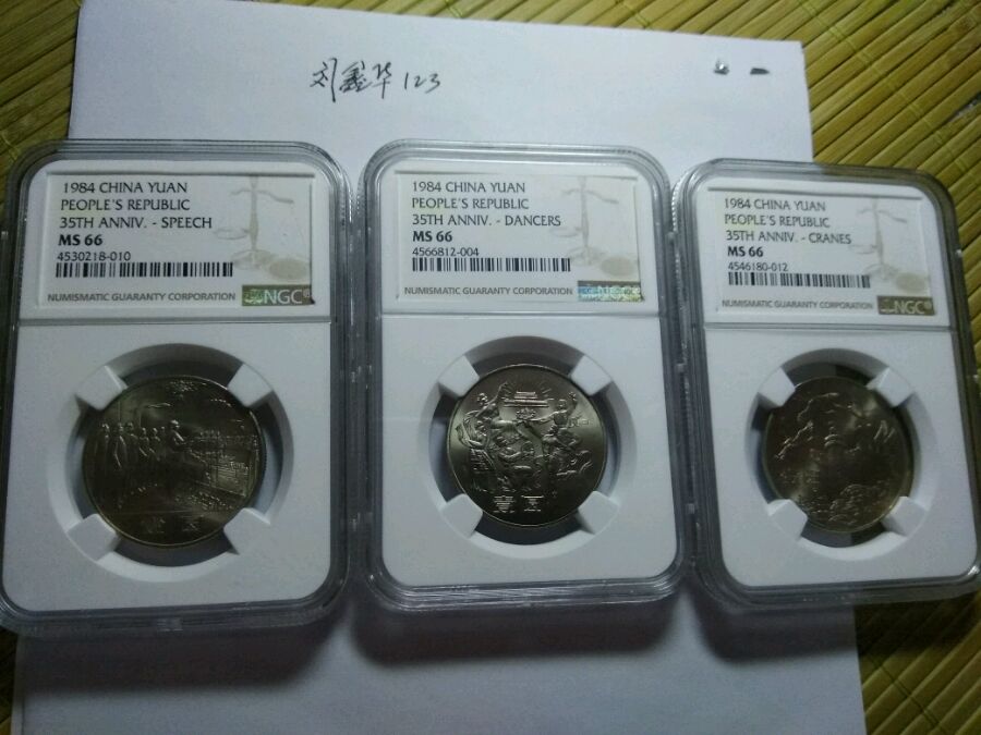 【交流2017.8.26】建国35周年纪念币,全新卷拆无氧化无处理550,评级币66分850.内蒙古66分150.