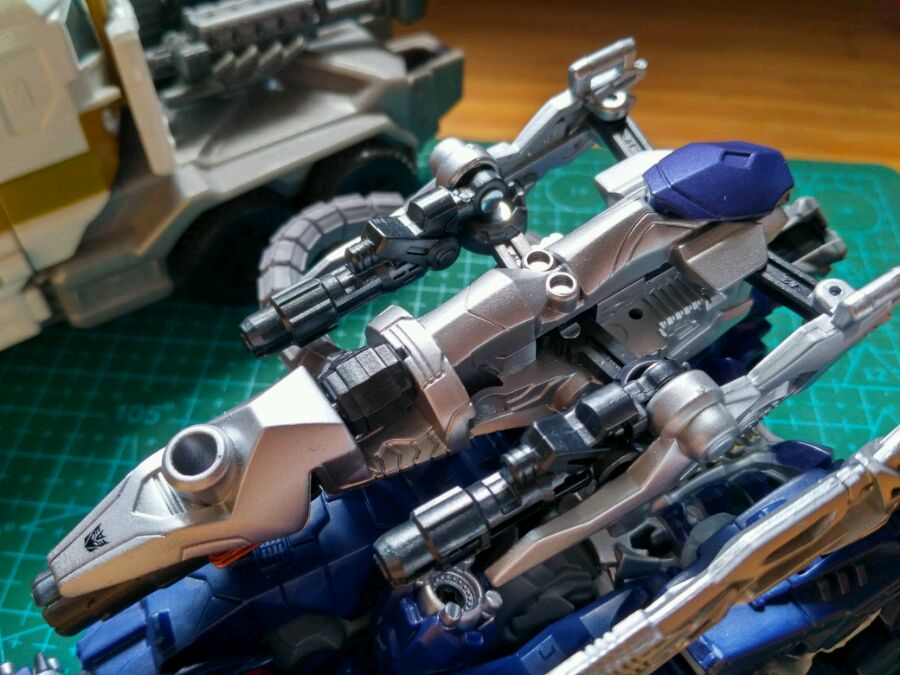 关于大小,我个人觉得适中,大家可以看的上图的底盘,隐藏的是很好,十分紧密。但我会有种觉得小的感觉,和合体战争白擎的比较。而且,我现在才发现轴动武器是可以固定住的😂
