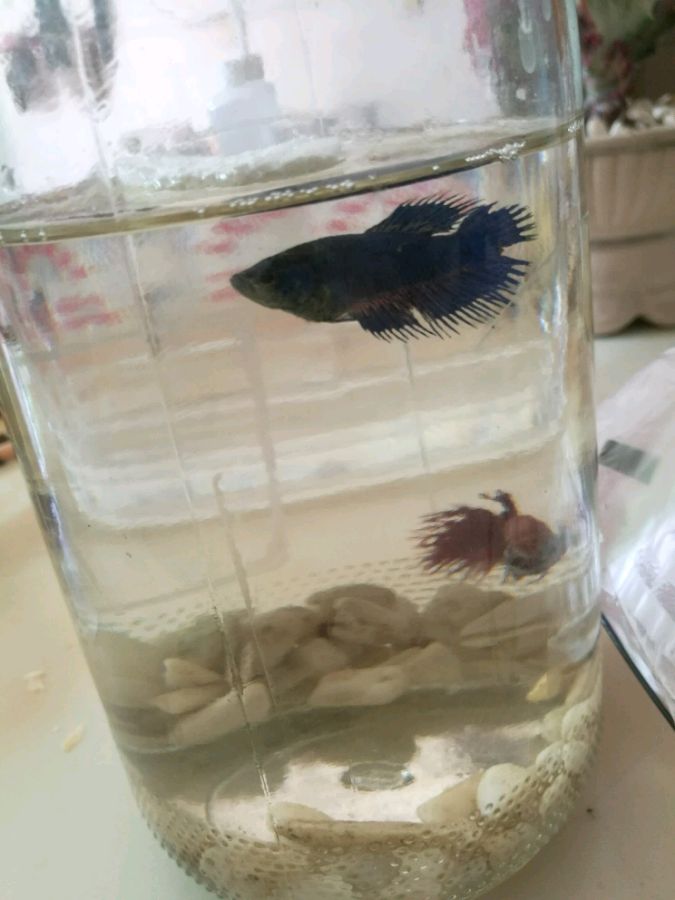 我家好像是公斗鱼被母的打。。。问问大家我这个母鱼是不是抱卵了?现在公鱼被母鱼打该怎么办呀?