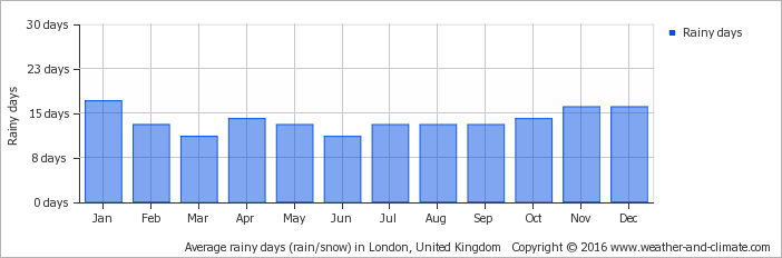 伦敦月均降水天数