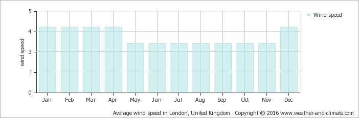 伦敦月均风速(米/秒)