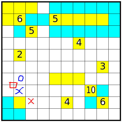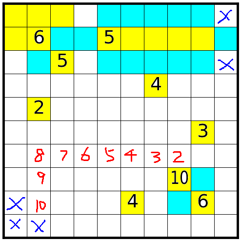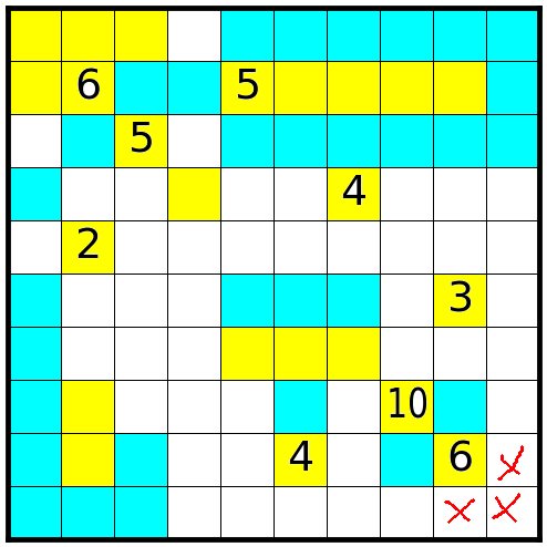 1、每个数字指出相应的岛占据多少方格;