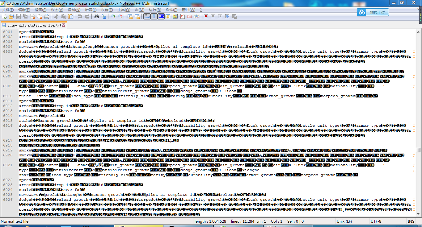 用notepad++打开lua文件后出现这种情况