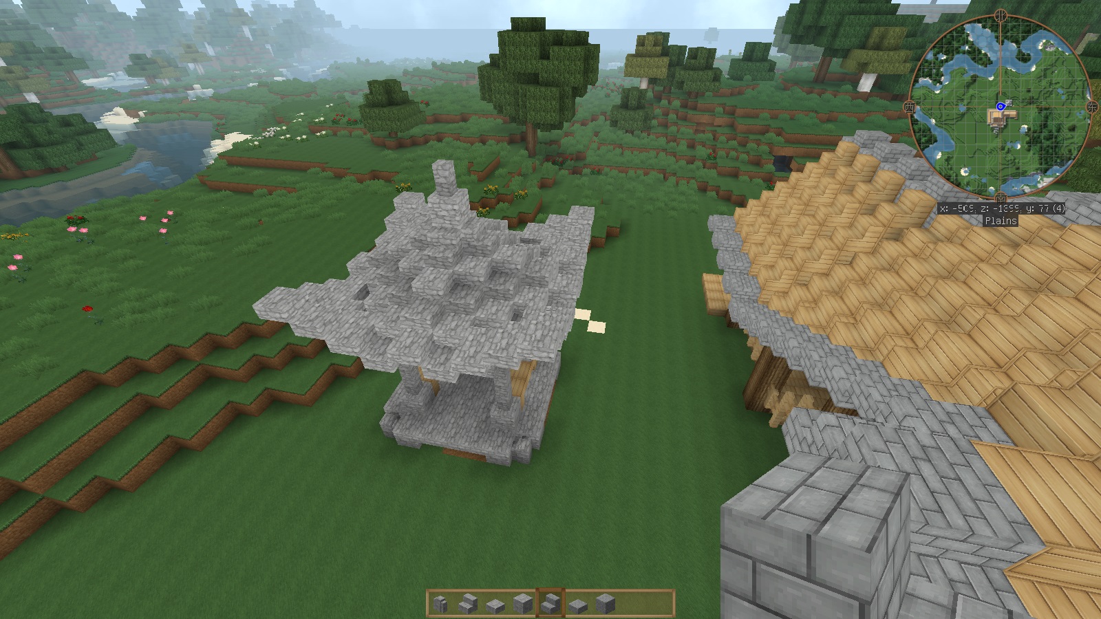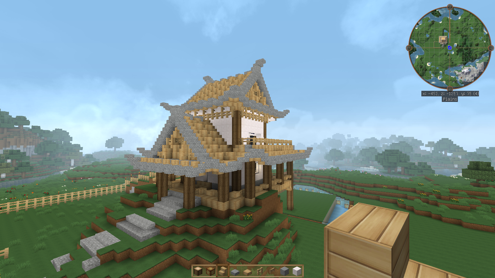 不知为什么感觉有点象宗教建筑物……瓦的颜色果然用错了吗?下次用石砖做瓦,石英做脊线好了,不过那样的话,用什么做墙就比较值得斟酌了~