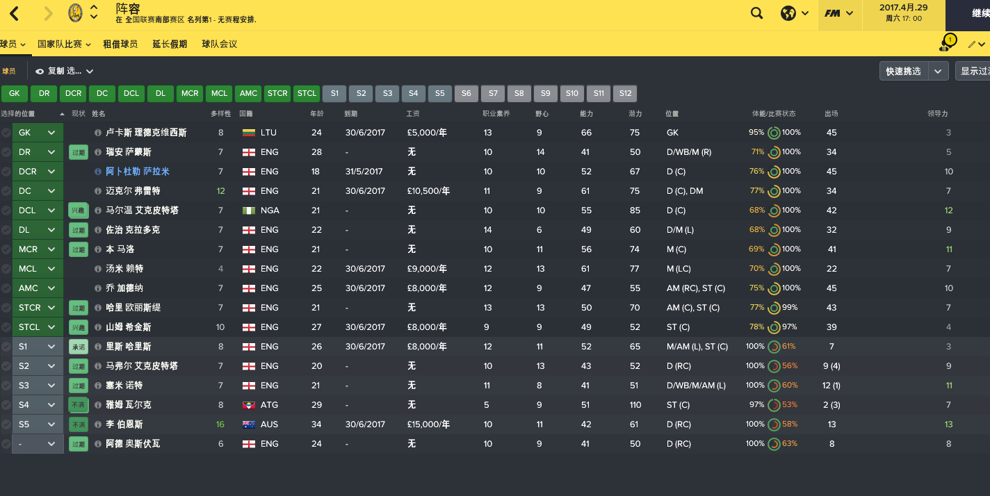 扯远了,话说回来,游戏和现实毕竟不一样,要在fm2017游戏引擎中达到控制中场的目的我觉得,第一,必须中场人多,以多打少,人数优势。所以我再中场选择了7个人来形成中场包围传导圈,这7个人分别是前腰AMC回撤,BBM,BWM,2个fb进攻无球时拉回中路接应,中路两个侧中卫前提形成的后场接应点及中场逼抢点,用7个人来保证中场的控制力保证球权组织进攻;第二,中场人多的情况下位置不能太重叠,以免无法达到传接效果,同时可以局部范围形成合围逼抢。