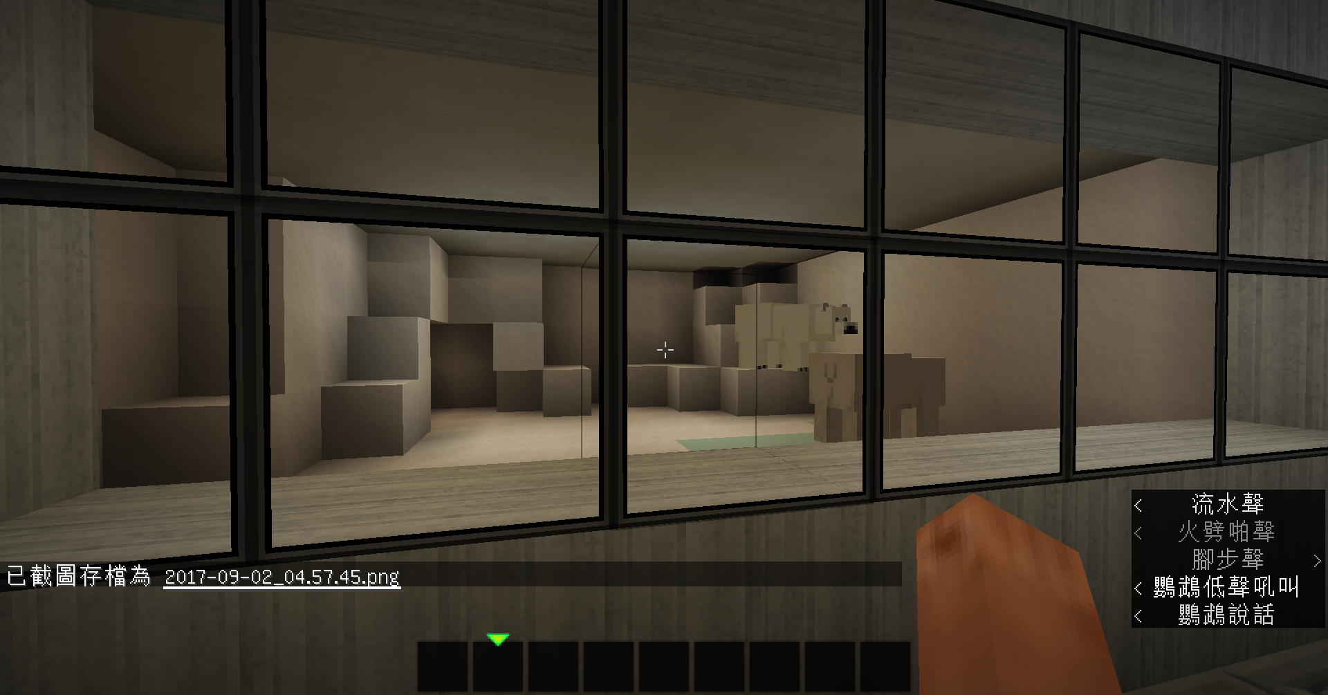 遊池底下本來放了些水下生物的, 不過之後不知道去哪了。還有, 測試礦車的時候不知為什麼把車推出去之後, 回來的時候多了隻羊坐在上面不願走, 結果一直在鐵路來回~