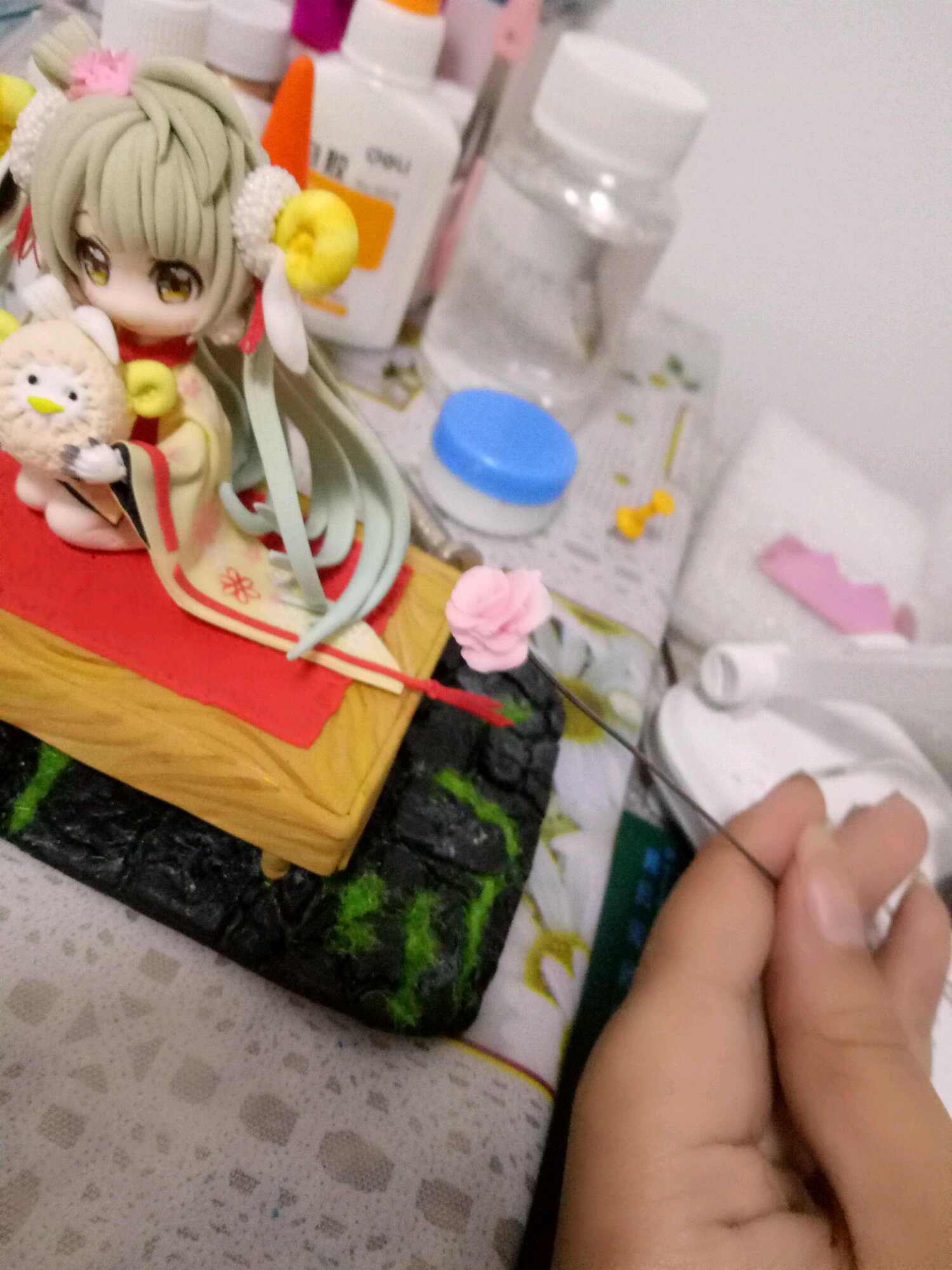 个小花盆 捏点花花插里面 比较小 耐心捏
