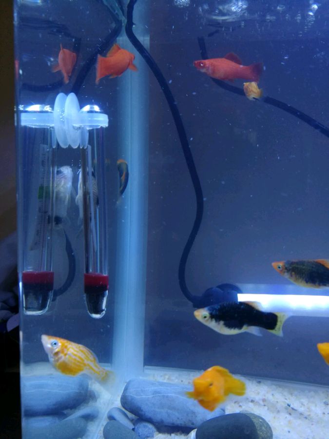 我看挺好玩的买了4条,大家帮我看看是什么鱼,还有家里的鱼老欺负熊猫鼠,弄的熊猫鼠满缸跑最后都演杂技了,问下怎么解决下。