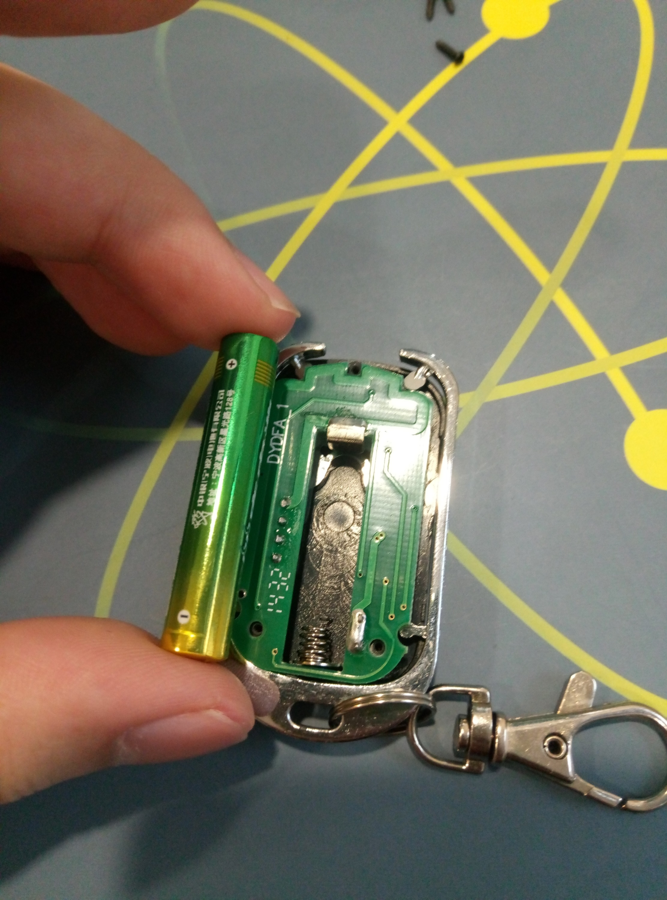卷帘门的遥控钥匙吧,去商店买,这种电池还蛮贵的,我15块钱一个买的