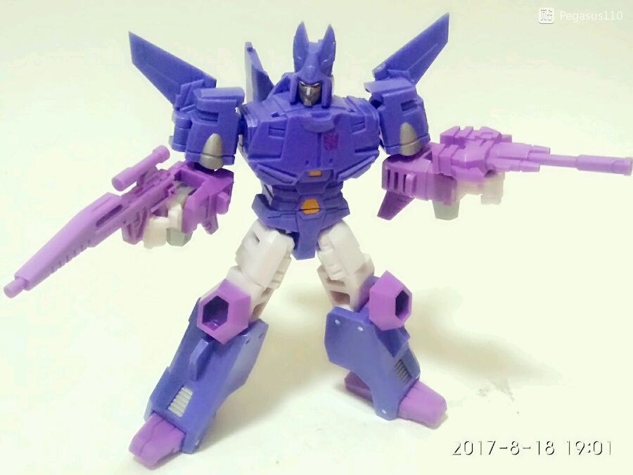 再说说合战狂飙,作为银箭改模,这个应该是同系列里改动最大的一个,变成主体以后的惊破天头雕也很霸气,只是毕竟是个一趴变形的改模,载具下部简直不能看……